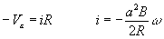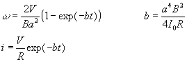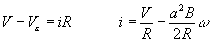 donde I0 es el momento de inercia que podemos calcular mediante la fórmula I0=ma2/2, donde m es la masa del disco y a su radio. Ecuación del circuitoComo hemos explicado al calcular la fem en la dinamo de disco, al girar el disco se produce una corriente inducida cuyo sentido es contrario al de la corriente de la batería. La fuerza sobre los portadores de carga es