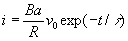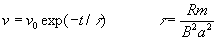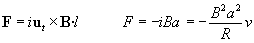 Si la espira de anchura a, se ha introducido x en la región en la que existe campo magnético que apunta perpendicularmente al plano del dibujo y hacia dentro, el flujo a través de la espira será F =B·S=-B·(ax) Aplicando la ley de Faraday se obtiene la fem De acuerdo a la ley de Lenz el sentido de la corriente inducida i es antihorario, ya que el flujo aumenta. Para una espira de resistencia R, la ecuación del circuito es Ve =iR La fuerza sobre el lado derecho de la espira es de sentido contrario a la velocidad v de la espira. La ecuación del movimiento de la espira será y la solución de la ecuación diferencial, con las condiciones iniciales t=0, v=v0, es La velocidad v de la espira disminuye exponencialmente con el tiempo. A partir de la expresión de la velocidad en función del tiempo obtenemos la posición x del móvil que parte del origen en el instante inicial t=0, x=0 A partir de la ecuación del circuito obtenemos la intensidad en función del tiempo La intensidad i que circula por la espira disminuye exponencialmente con el tiempo. Estas ecuaciones se aplican mientras que el lado derecho de la espira esté en el seno del campo magnético. Cuando ambos lados estén dentro de la región x³ 0, la intensidad de la corriente inducida será cero y la fuerza que ejerce el campo magnético sobre la espira será nula y por tanto, la velocidad de la espira será constante.