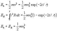 Estudio energéticoPodemos comprobar que la energía cinética inicial de la espira Ek, se disipa en la resistencia de la espira. La ley de Joule afirma que la energía por unidad de tiempo (potencia) disipada en la resistencia es i2R. Comprobamos que en cualquier instante, la suma de la energía cinética Ek de la espira y de la energía disipada en la resistencia ER es igual a la energía cinética inicial de la espira.