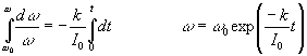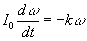 El momento de dichas fuerzas respecto del eje del disco, como se ha señalado, es proporcional a la velocidad angular del disco, Mm=kw Donde k es una constante que depende de la conductividad del material del que está hecho el disco, la intensidad del campo magnético y la posición y tamaño de la porción de la superficie del disco sobre la que actúa el campo magnético. Una situación análoga al movimiento vertical de una varilla en un seno de un campo magnético uniforme. Ecuación de la dinámica de rotaciónSupongamos un disco de momento de inercia I0 que se le proporciona una velocidad angular w0 en el instante inicial. La velocidad angular del disco en el instante t se obtiene a partir de la ecuación de la dinámica de rotación La velocidad angular disminuye exponencialmente con el tiempo. El péndulo de Pohl es un disco que puede oscilar angularmente gracias al momento que ejerce sobre el mismo un muelle helicoidal. Un dispositivo de este tipo describe oscilaciones libres. Si al disco se le acopla un anillo de metal (normalmente cobre) y se le hace girar entre los polos un electroimán tenemos un modelo de oscilador amortiguado. Dependiendo de la intensidad de la corriente en el electroimán, el campo puede ser mayor o menor. El momento de la fuerza de frenado magnético puede hacerse suficientemente grande de modo que el sistema deje de oscilar, estamos en el caso de las oscilaciones críticas y sobreamortiguadas.