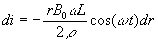 Si J es uniforme en la sección bδ, la intensidad i de la corriente que fluye por la región rectangular es J=i/(bδ)i El primer término es la fem inducida Vε=vBa, el término que multiplica la intensidad es la resistencia r que presenta la región rectangular al paso de la corriente. V es la diferencia de potencial en los terminales de la batería, y es también la diferencia de potencial entre los extremos de la resistencia R, por lo que V=iR. Llegamos a la ecuación del circuito vBa=i(r+R)