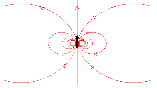 Para calcular la intensidad de las corrientes inducidas I(z) tenemos que elegir un modelo de imán. El modelo de dipolo magnético es correcto solamente para puntos muy distantes del imán, pero no lo es para un imán cuyo tamaño es comparable al radio del tubo. En la página titulada “Demostración de la ley de Faraday (I)” hemos considerado otro modelo de imán, el formado por dos cargas magnéticas q puntuales iguales y opuestas que distan d, la longitud del imán. El campo magnético B en las proximidades de un polo magnético tiene una expresión similar a la del campo eléctrico de una carga puntual.