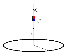 Solución de la ecuación del movimientoSustituyendo la intensidad I en la ecuación del movimiento, obtenemos la ecuación diferencial Como dz/dt<0, la fuerza que ejerce sobre el imán el campo magnético producido por la corriente inducida de la espira se opone a la velocidad, es una fuerza de frenado, pero no es de la forma λv, ya que λ no es constante. Para determinar la posición y velocidad del imán en función del tiempo, tenemos que resolver una ecuación diferencial de segundo orden por procedimientos numéricos con las siguientes condiciones iniciales: en el instante t=0, z=z0, dz/dt=0. El imán parte del reposo desde la altura z0. Escribimos la ecuación diferencial en forma adimensional, definiendo las nuevas variables x y τ. La ecuación diferencial en términos de las variables adimensionales x, τ se escribe.