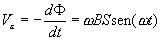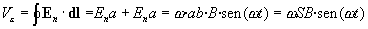 En el instante t en el que w t= p /2 la fem vale Vε=0.3·0.2·0.004·1·sen(p /2)=240.0·10-6 V