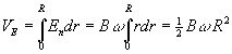 La fuerza magnética impulsa a los portadores de carga positivos desde el eje hacia el borde del disco. El campo En=fm/q (fuerza por unidad de carga ) es En=v·B=B·w ·r. La fem, o diferencia de potencial entre el borde del disco y el eje es