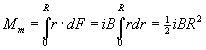 La fuerza magnética sobre una porción de corriente rectilínea comprendida entre r y r+dr (el campo y la corriente son perpendiculares) es dF=iBdr El momento de todas estas fuerzas respecto del eje de rotación es Este momento se opone al movimiento del disco, por lo que tendremos que aplicar una fuerza cuyo momento Ma sea igual y opuesto al momento Mm que ejerce el campo magnético sobre la corriente inducida. Como podemos apreciar, el disco de Faraday tiene un comportamiento similar a la varilla que se mueve en un campo magnético uniforme. La diferencia está en el tipo de movimiento, rotación en el disco, traslación en la varilla, y las magnitudes que intervienen: