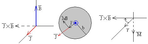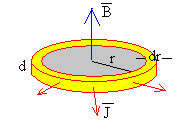 Momento angular mecánicoEn el instante t, la intensidad que circula por los cables coaxiales es i(t). El campo magnético ejerce una fuerza sobre las corrientes radiales que fluyen desde el borde de las placas circulares hacia los cables coaxiales en la placa superior, y a la inversa en la inferior. La fuerza que ejerce un campo magnético B sobre una porción de corriente por la que circula una intensidad i es El vector densidad de corriente J tiene la dirección y sentido del vector unitario ut y se define como La fuerza que ejerce el campo magnético sobre la corriente de intensidad i la podemos escribir en términos del vector densidad de corriente J y el momento de dicha fuerza respecto del eje de rotación