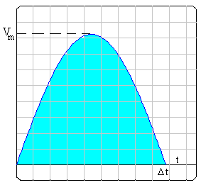 El área bajo la curva, fem en función del tiempo, se puede medir de varias maneras: Ajustando la curva a una función del tipo seno, se mide en el osciloscopio el tiempo Δt, y el máximo Vm. La ecuación de la curva es Integrando obtenemos el área En la experiencia real, la bobina no tiene por que moverse con velocidad angular uniforme. En este caso, el área bajo la curva se puede obtener de forma aproximada poniendo una rejilla transparente encima de la representación gráfica de la función. Cuanto más fina sea la rejilla con mejor aproximación obtendremos el área bajo la curva. En el “osciloscopio” que se ha simulado, podemos elegir una rejilla gruesa, en la que se han establecido las siguientes divisiones: