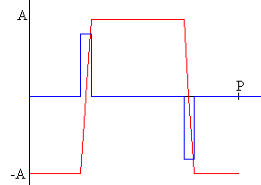 Fundamentos físicosAnalizaremos cada una de las señales que produce el generador Señal de forma cuadradaPara crear un campo magnético constante y por tanto, un flujo constante, usamos la señal cuadrada del generador. La señal cuadrada se caracteriza por que durante medio periodo el potencial vale V, y durante el otro medio periodo vale V. La señal no es exactamente cuadrada, ya que no pasa del potencial positivo al negativo y viceversa, en un instante concreto, sino durante un intervalo de tiempo, pequeño comparado con el periodo de la señal.