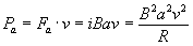 una fuerza Para que la varilla se mueva con velocidad constante v, hemos de ejercer una fuerza Fa igual y de sentido contrario a Fm. La energía mecánica por unidad de tiempo (potencia) suministrada será La energía por unidad de tiempo (potencia disipada por efecto Joule) en la resistencia será PR=i2R En el estado estacionario, la intensidad de la corriente es constante, la energía por unidad de tiempo suministrada mecánicamente al mover la varilla, se disipa en la resistencia en forma de calor. Si consideramos la varilla como una batería cuya fem es Vε=vBa. La potencia suministrada por la fem será Pε=Vε·i
