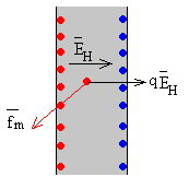Este campo, ejerce una fuerza hacia la derecha q·EH sobre los portadores de carga. La cargas superficiales se incrementan hasta que la fuerza hacia la derecha fv =q·EH se hace igual a la componente de la fuerza magnética fm·cosθ dirigida hacia la izquierda. Referencias Mosca E. Magnetic forces doing work?. Am. J. Phys. 42, April 1974, pp. 295-297 |