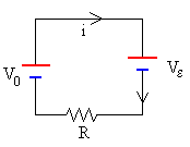 El flujo Φ=B·S=-B·a·x Derivando el flujo Φ respecto del tiempo y cambiando de signo Vε= B·a·v Siendo a la distancia entre los raíles, menor que la longitud L de la varilla, y v la velocidad de la varilla. De acuerdo a la segunda ley de Kirchhoff, la suma de fems es igual al producto de la intensidad por la resistencia total del circuito. -Vε+V0=iR