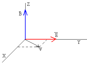 Ecuaciones del movimientoSupongamos que el campo magnético B tiene la dirección del eje Z, el campo eléctrico E la dirección del eje Y, y el vector velocidad v está en el plano XY. La partícula cargada parte de la posición inicial (x0, y0) con velocidad inicial (v0x, v0y)