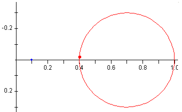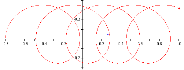 Suponiendo que el tiempo se mide en μs=10-6 s, introducimos en el control de edición titulado V. angular 4.79, y en el control titulado V. deriva, 0.4. Probar con distintas velocidades iniciales, y orientaciones del vector velocidad inicial.