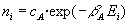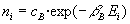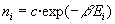 DistribuciónConsideremos un sistema aislado compuesto por un gran número de partículas, en el cual, cada partícula puede ocupar alguno de los niveles de energía E0, E1, E2, .... Estos pueden estar cuantizados (como los estados rotacionales o vibracionales de una molécula) o bien, pueden formar un espectro continuo (como la energía cinética de las moléculas de un gas). Por ejemplo, en el modelo de sólido de Einstein, los átomos se representan por osciladores armónicos unidimensionales. Los osciladores interaccionan muy débilmente de modo que la energía de la interacción se puede considerar despreciable frente a la energía del oscilador. La energía del nivel i será Ei=ie , siendo e la diferencia de energía entre dos niveles consecutivos. En un momento dado, las partículas están distribuidas entre los diferentes niveles de modo que n0 tienen energía E0, n1 partículas tienen energía E1 y así, sucesivamente.