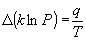 Definición de temperaturaSupongamos que transferimos una cantidad de calor q al sistema y como consecuencia una partícula pasa del nivel Ej al nivel Ek, q=Ek-Ej. El número de micoestados P cambia, la relación ahora es El cambio en P que experimenta el sistema cuando le transferimos una pequeña cantidad de calor q depende solo de q, y no de la disposición de los niveles de energía, de cuantos niveles de energía hay accesibles, del espaciado entre los niveles, o si es una o más partículas las que cambian de nivel. Tomando logaritmos neperianos llegamos a la expresión equivalente