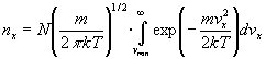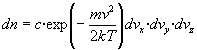 donde c es una constante a determinar sabiendo que el número total de moléculas es N. Se efectúa una integral triple entre los límites -¥ y +¥,