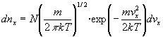 AplicacionesCalculamos el número de moléculas cuya componente X de la velocidad está comprendida entre vx y vx+dvx independientemente de los valores de las otras dos componentes, integrando respecto de vy y vz entre los límites -¥ y +¥ .