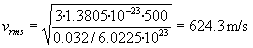 Ejemplo: Calcular la vrms del oxígeno a 500 ºK