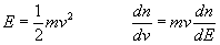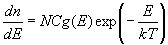 El número de moléculas cuya energía está comprendida entre E y E+dE se obtiene aplicando la ley de Boltzmann. N es el número total de partículas en el recipiente de volumen V, y C es una constante de proporcionalidad que se determina a partir de la condición de que todas las partículas tienen una energía comprendida entre cero e infinito. Introduciendo el valor de C en la fórmula anterior, queda finalmente.