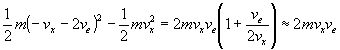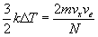 Choque de una molécula contra un émbolo móvilCuando un émbolo se mueve hacia la izquierda comprimiendo el gas encerrado en el recipiente, las moléculas que chocan contra el émbolo, como podemos ver en las sucesivas figuras, incrementan su velocidad a causa de su choque con una pared móvil. Cada molécula del gas cambia su velocidad en el choque contra el émbolo móvil desde vx a vx-2ve. Se supone que el émbolo no cambia de velocidad como resultado del choque con las moléculas ya que su masa M es muy grande comparada con la masa m de una molécula. Deducción alternativa Una partícula de masa m y velocidad vx choca elásticamente con un émbolo de masa M que se mueve con velocidad (–ve). Conservación del momento lineal y la igualdad de la energía cinética antes y después del choque Escribimos las dos ecuaciones en la forma equivalente Despejando las incógnitas Como la masa M del émbolo es muy grande comparado con masa m de la partícula El émbolo no cambia de velocidad como resultado del choque con las moléculas ya que su masa M es muy grande comparada con la masa m de una molécula. Sin embargo, como el número de choques es muy grande, para que el émbolo se mantenga con velocidad constante es necesario ejercer una fuerza. Mediante este mecanismo, el émbolo incrementa la energía de las partículas encerradas en el recipiente. La velocidad de desplazamiento del émbolo es muy pequeña comparada con la velocidad de las moléculas, la energía ganada por una molécula en su choque con el émbolo es rápidamente redistribuida entre las otras moléculas del gas, de modo que el gas está siempre en equilibrio. Supongamos que el gas consiste en N partículas contenidas en el volumen cilíndrico de longitud L, tal como se muestra en la figura. Si el gas tiene N partículas, el tiempo medio entre dos colisiones es La ganancia de energía cinética que experimenta el gas en cada choque con el émbolo es Hemos supuesto que la velocidad con la que se mueve el émbolo ve es mucho más pequeña que la velocidad promedio vx de las moléculas del gas.