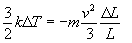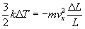 La variación de energía cinética en un choque es El trabajo de de la fuerza F se invierte en incrementar la energía cinética de la partícula. -F·Δx=ΔEk Relación entre las magnitudes microscópicas y los parámetros macroscópicos.La energía cinética está relacionada con la temperatura, la fuerza con la presión y la posición de la pared móvil con el volumen del recipiente. Sustituimos: