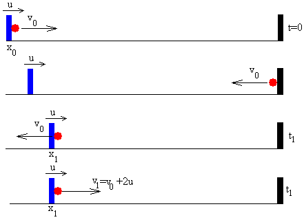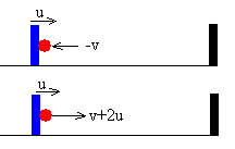 El cambio de momento lineal en cada choque es m(v+2u)-m(-v)=2m(u+v)