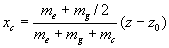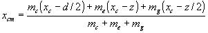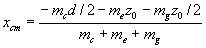 Comparamos la situación inicial a la izquierda de la figura (la posición del émbolo en el cilindro es z0) , y la situación en el instante t en la que el émbolo se ha movido a la posición z en el interior del cilindro. Podemos relacionar la posición z del émbolo en el interior del cilindro con la posición xc del cilindro. Calculemos la posición del c.m. del sistema aislado en el instante inicial y en el instante t. El sistema aislado estaba inicialmente en reposo, su centro de masa no habrá cambiado de posición. La relación entre la posición del cilindro xc y la del émbolo z en el interior del cilindro es La velocidad del c.m. del sistema aislado es cero