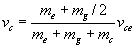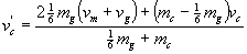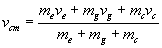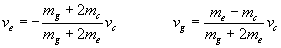 La velocidad del c.m. del gas es justamente la mitad de la velocidad del émbolo en el interior del cilindro, ya que si el émbolo se desplaza de z0 a z en el tiempo t, el centro de masa del gas se desplaza de z0/2 a z/2 en el mismo tiempo. Por tanto, Teniendo en cuenta que vcm=0, relacionamos la velocidad del cilindro vc con la velocidad del émbolo en el interior del cilindro vce. Como vemos es la misma relación que entre la posición xc del cilindro y el desplazamiento del émbolo en el interior del cilindro z-z0. Expresamos las velocidades del émbolo ve y del gas vg en función de la velocidad del cilindro vc, todas ellas medidas respecto del Sistema de Referencia del Laboratorio.