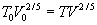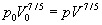 Expansión adiabática del gas idealEl cilindro está en el vacío, cerrado por un émbolo fijo situado en la posición z0, se conecta a una bomba de bicicleta que tiene las siguientes dimensiones: 20 cm de largo y 5 cm de diámetro, su volumen en litros es Vb=p 0.052·0.2·1000/4=0.393 l. Cada vez que se acciona la bomba se introducen en el cilindro nb moles de gas La presión inicial del gas en el cilindro después de accionar N veces la bomba será p0V0=( N·nb)RT0 Se libera el émbolo y el gas se expande muy rápidamente (supondremos una transformación adiabática), hasta que el émbolo alcanza la posición z=d, (se sale fuera del cilindro). El volumen final será por tanto V=p r2d Calculamos la presión final p y la temperatura final T. Para un gas diatómico los calores específicos valen cv=5R/2, cp=cv+R=7R/2, índice adiabático g =cp/cv=7/5.