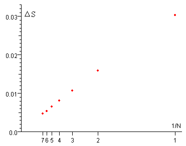 La variación de entropía del proceso que consta de cuatro estados de equilibrio es ΔS= ΔS1+ΔS2+ΔS3+ΔS4=0.0081 Que como vemos es mucho menor que en el proceso de una sola etapa.
