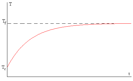 Como hemos estudiado en la página titulada “Ley del enfriamiento de Newton” al cabo de un cierto tiempo (teóricamente infinito) el cuerpo alcanza la temperatura Tf. T=Tf+(Tc-Tf)·exp(-k·t)