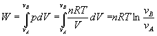 Si una de las paredes es un émbolo móvil de área A y éste se desplaza dx, el intercambio de energía del sistema con el exterior puede expresarse como el trabajo realizado por la fuerza F a lo largo del desplazamiento dx. dW=-Fdx=-pAdx=-pdV Siendo dV el cambio del volumen del gas. El signo menos indica que si el sistema realiza trabajo (incrementa su volumen) su energía interna disminuye, pero si se realiza trabajo sobre el sistema (disminuye su volumen) su energía interna aumenta. El trabajo total realizado cuando el sistema pasa del estado A cuyo volumen es VA al estado B cuyo volumen es VB.