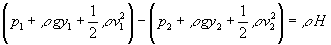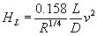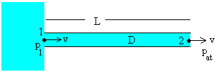 Hay dos expresiones para la pérdida HL una que describe el comportamiento del fluido en régimen laminar y otra que describe el comportamiento del fluido en régimen turbulento como veremos más adelante. Otras pérdidasBajo el término Hl se agrupan otras pérdidas menores debidas a la entrada y salida del fluido por el tubo horizontal, y que son independientes de que el régimen del fluido sea laminar o turbulento. siendo comunes los valores de K=0.78 en la entrada y K=1 en la salida. En total tenemos que Fluido en régimen laminarA la diferencia de presión p1-p2 en los extremos del tubo horizontal dividida entre la densidad r del fluido, se le denomina pérdida de carga HL en el flujo laminar Siendo L y D la longitud y el diámetro del tubo horizontal y h la viscosidad del fluido. La ecuación (2) teniendo en cuanta las expresiones de las pérdidas de carga HL en el flujo laminar y las pérdidas Hl debidas a la entrada y salida del fluido por el tubo horizontal, se expresa