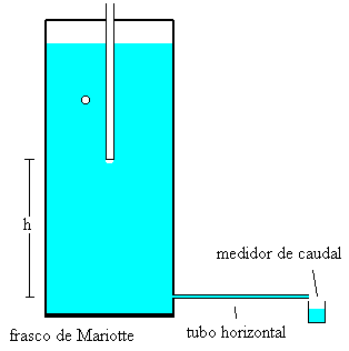 El frasco de MariotteUno de los ejemplos más ilustrativos de la ecuación de Bernoulli es el frasco de Mariotte. Este sencillo dispositivo nos proporciona un caudal constante mientras el nivel de líquido en el recipiente esté por encima del extremo inferior del tubo vertical.