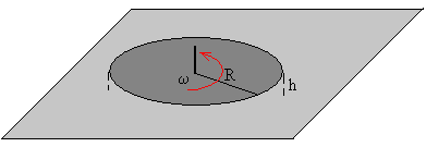 El dispositivo experimental consta de un disco de radio R, que puede girar alrededor de un eje vertical con un rozamiento muy pequeño en los rodamientos. El disco de masa m está suspendido por la presión del gas a una altura h (muy pequeña) por encima de una superficie plana.