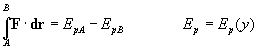 Dada la energía potencial podemos obtener la fuerza conservativa, derivando La energía potencial asociada con las dos fuerzas conservativas es Ep=(mg- rfVg)y A medida que el globo asciende en el aire con velocidad constante experimenta una fuerza de rozamiento Fr debida a la resistencia del aire. La resultante de las fuerzas que actúan sobre el globo debe ser cero. rf Vg- mg-Fr=0 Como rfVg> mg a medida que el globo asciende su energía potencial Ep disminuye. Empleando el balance de energía obtenemos la misma conclusión El trabajo de las fuerzas no conservativas Fnc modifica la energía total (cinética más potencial) de la partícula. Como el trabajo de la fuerza de rozamiento es negativo y la energía cinética Ek no cambia (velocidad constante), concluimos que la energía potencial final EpB es menor que la energía potencia inicial EpA. En la página titulada "movimiento de un cuerpo en el seno de un fluido ideal", estudiaremos la dinámica del cuerpo y aplicaremos el principio de conservación de la energía.