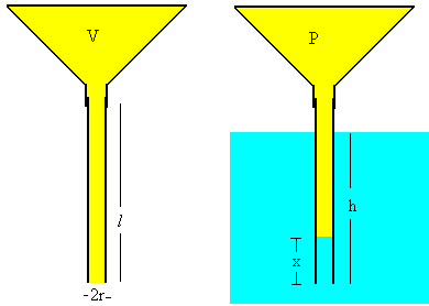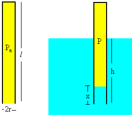 La presión P de aire encerrado en el tubo es la suma de la presión atmosférica Pa, y la de una columna de agua de altura h-x. P=Pa+ρg(h-x) Suponiendo que el aire se comporta como un gas ideal y que el proceso tiene lugar a temperatura constante. Pa·Vi=P·Vf Conocido los datos del radio r del tubo y su longitud l, midiendo la longitud de la parte del tubo sumergida h, y la altura x del agua que ha penetrado en el tubo, se despeja la presión atmosférica Pa.