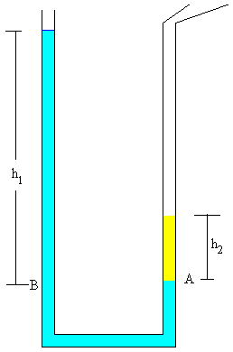 Igualando las presiones en A y B, pA=pB, obtenemos Las densidades de los dos líquidos no miscibles están en relación inversa a las alturas de sus columnas sobre la superficie de separación en el tubo en forma de U.