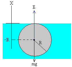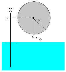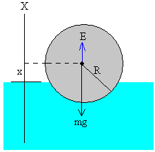 Ecuación del movimientoSupondremos que el agua y el aire son fluidos ideales, que no ejercen fuerzas de rozamiento sobre la esfera en movimiento. Para describir el movimiento, situamos el origen del eje X en la superficie del agua y llamamos x a la posición del centro de la esfera