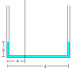 Como el fluido es incomprensible, la longitud total inicial de líquido es d+2h, por lo que en esta configuración,