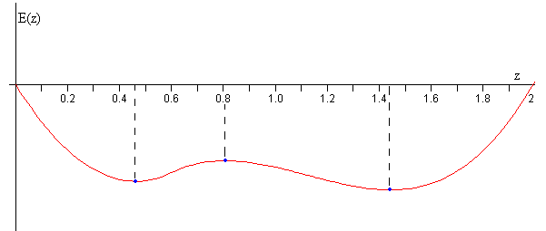 Se pulsa el botón titulado Empieza La velocidad angular angular de rotación ω se va incrementando linealmente con el tiempo, hasta un valor límite 9 rad/s y luego, disminuye hasta cero. Cuando se representa la energía potencial E(z) del sistema para cada valor de la velocidad angular de rotación ω, se puede cambiar la escala en cualquier momento, eligiendo el factor de escala en el control de selección titulado Escala.