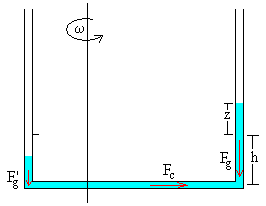 Brazo horizontal La fuerza centrífuga sobre la porción de líquido en el tubo horizontal vale