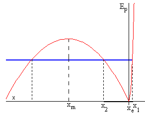 Donde xe es la posición de equilibrio al cual le vamos a asignar una energía potencial cero. Establecemos por tanto, en esta posición el nivel cero de energía potencial Ep(xe)=0. Para x>0 tenemos que hacer la integral