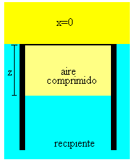 La presión del aire contenido en la burbuja es, para x<0 P+ρg(z+|x|)=P+ρg(z-x) Suponiendo que el aire experimenta una transformación isotérmica entre el estado inicial y el final, tendremos P0·l0= (P+ρg(z-x))z