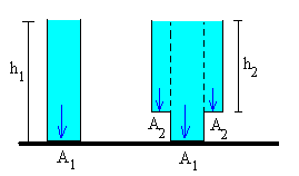 La resultante nos da el peso del líquido contenido en el recipiente. F1-F2=m2g Como vemos, la paradoja queda resuelta si consideremos la fuerza que ejerce el fluido debido a la presión en la superficie anular A2, que en el primer ejemplo es hacia abajo y en el segundo es hacia arriba. Hemos comprobado en dos ejemplos sencillos que la suma de las fuerzas verticales debidas a la presión que ejerce el fluido en las paredes del recipiente iguala al peso del fluido contenido en el mismo.