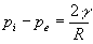 La presión exterior a la burbuja es la suma de la presión atmosférica p0 más la de la columna de líquido de densidad r y altura h. pe=p0+r gh