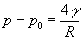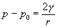 Sea p0 la presión exterior. Para formar la gota de radio r es necesario aplicar mediante el émbolo una presión p algo mayor que p0. El trabajo realizado por el émbolo sobre el líquido al desplazarse es p·dV . Pero la gota realiza un trabajo p0·dV sobre su entorno ya que desplaza el aire al incrementar su volumen dV. Ambos volúmenes son iguales debido a que el líquido es incomprensible. El trabajo total sobre el líquido será dW=(p-p0)·dV Este trabajo se emplea en incrementar la superficie de la gota, mientras se mantiene la temperatura y el volumen del líquido constantes. dW=g dA Igualando ambos trabajos y teniendo en cuenta las fórmulas del área y del volumen de una superficie esférica. dV=4p r2dr, y dA=8p r·dr