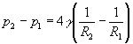 En el equilibrio F1=F2 la diferencia de presiones es tanto mayor cuanto menor es el radio R. Esta expresión es un caso particular de la denominada ley de Laplace. El factor cuatro aparece por que una pompa de jabón tiene dos caras: interior y exterior. En el caso de una gota de agua, solamente hay una cara por lo que la diferencia de presión se reduce a la mitad.