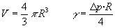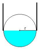 Observamos como cambia la diferencia de Dp presión en el manómetro. Obtenemos el valor de la tensión superficial g , cuando esta diferencia de presión se hace máxima entonces el radio de la burbuja R es igual al radio del tubo r. Obtenemos el valor de la tensión superficial g cuando se ha insuflado todo el aire contenido en la jeringa V=5 cm3, el radio R de la burbuja es Al efectuar este cálculo, hemos despreciado el volumen del casquete esférico que está en el interior del tubo (véase la última figura). Una vez que se han realizado los cálculos se pulsa el botón titulado Respuesta.